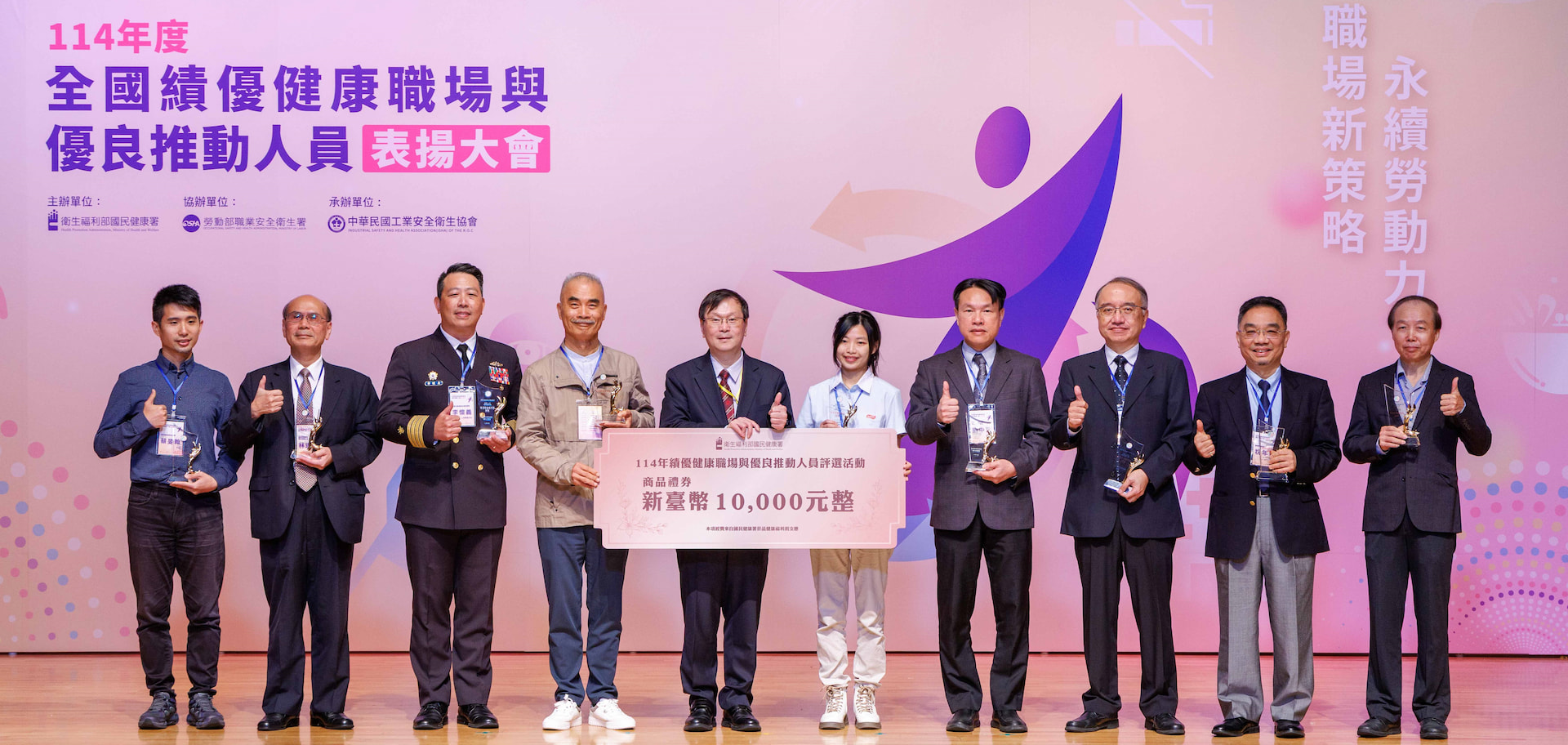 • 「輔」-健康管理支持:建立專業職醫護關懷機制、面談及後續追蹤服務;提供優於法規的健檢制度,員工健檢率達100%;並利用Walkii app數位工具落實「722原則」血壓監測,及早發現員工的潛在風險。